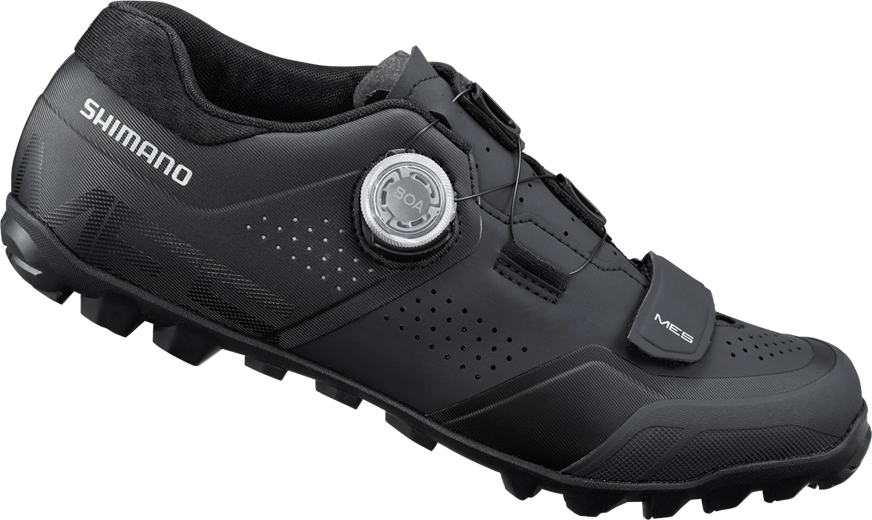 The Shimano ME5 is a dedicated performance trail shoe with excellent pedaling efficiency and off-the-bike traction.